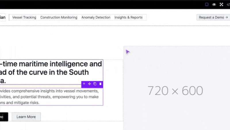 Within the editor, you can update various sections of your website home page using plain English. Click on the magic wand button located at the top right of the page. Make sure to select a specific section of your website before clicking the button. Leo will then concentrate on editing the selected component.